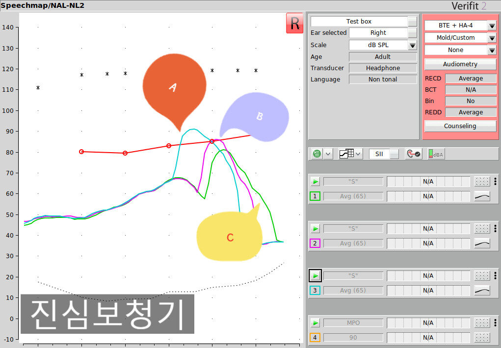 이때 실이측정 장비(스피치맵/REM 시스템)는 보정(calibration)된 자극을 활용하여 /s/ 와 /sh/ 의 표준화된 스펙트럼을 제공하고, 임상 검증에 활용할 수 있습니다.